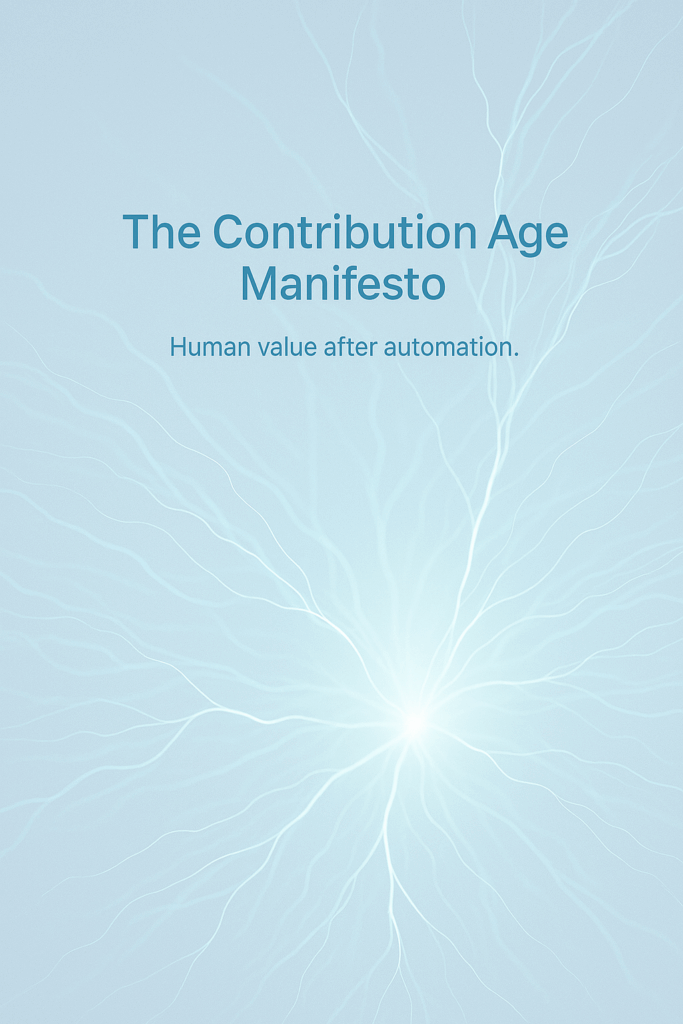 This manifesto declares the only path forward: Contribution Economy—where human value derives from verified improvement of other humans. Where identity becomes portable through cryptographic attestation. Where cascade depth and absence delta replace credentials and job titles.